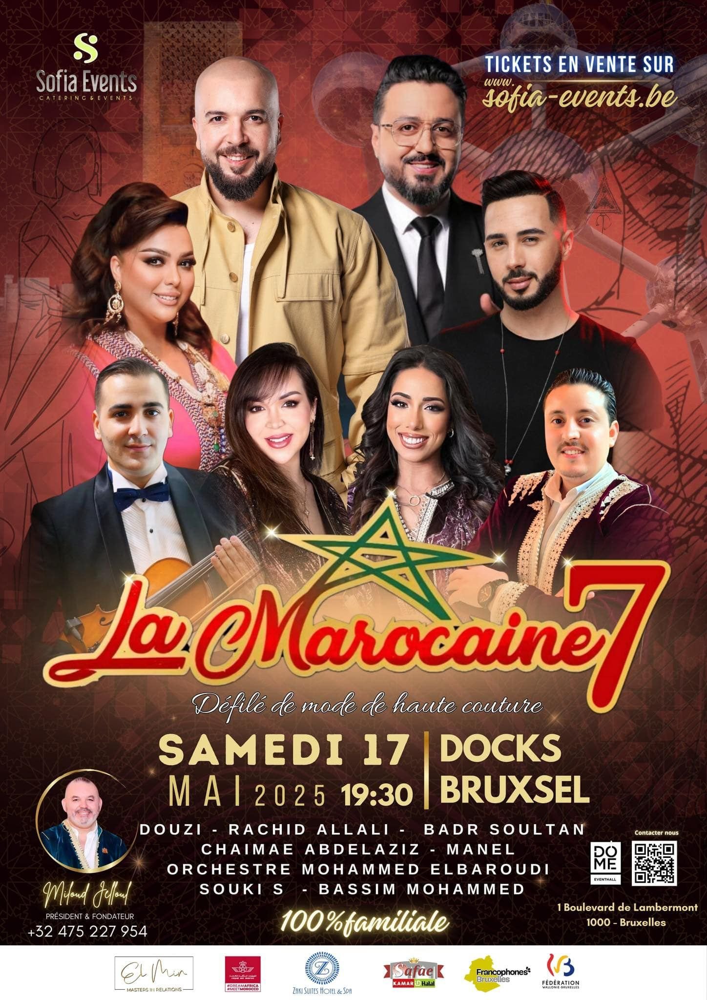 تلتقي الجالية المغربية المقيمة بأوروبا عموما وببلجيكا بشكل خاص مرة أخرى مع حفل “la marocaine7” الذي يحتفي بالقفطان المغربي والأغنية المغربية بكل ألوانها، من خلال تخصيص عروض أزياء خاصة يتم تنظيمها لهذا الغرض، وحضور تفاعلي كبير لنجوم مغاربة من داخل المغرب وخارجه.